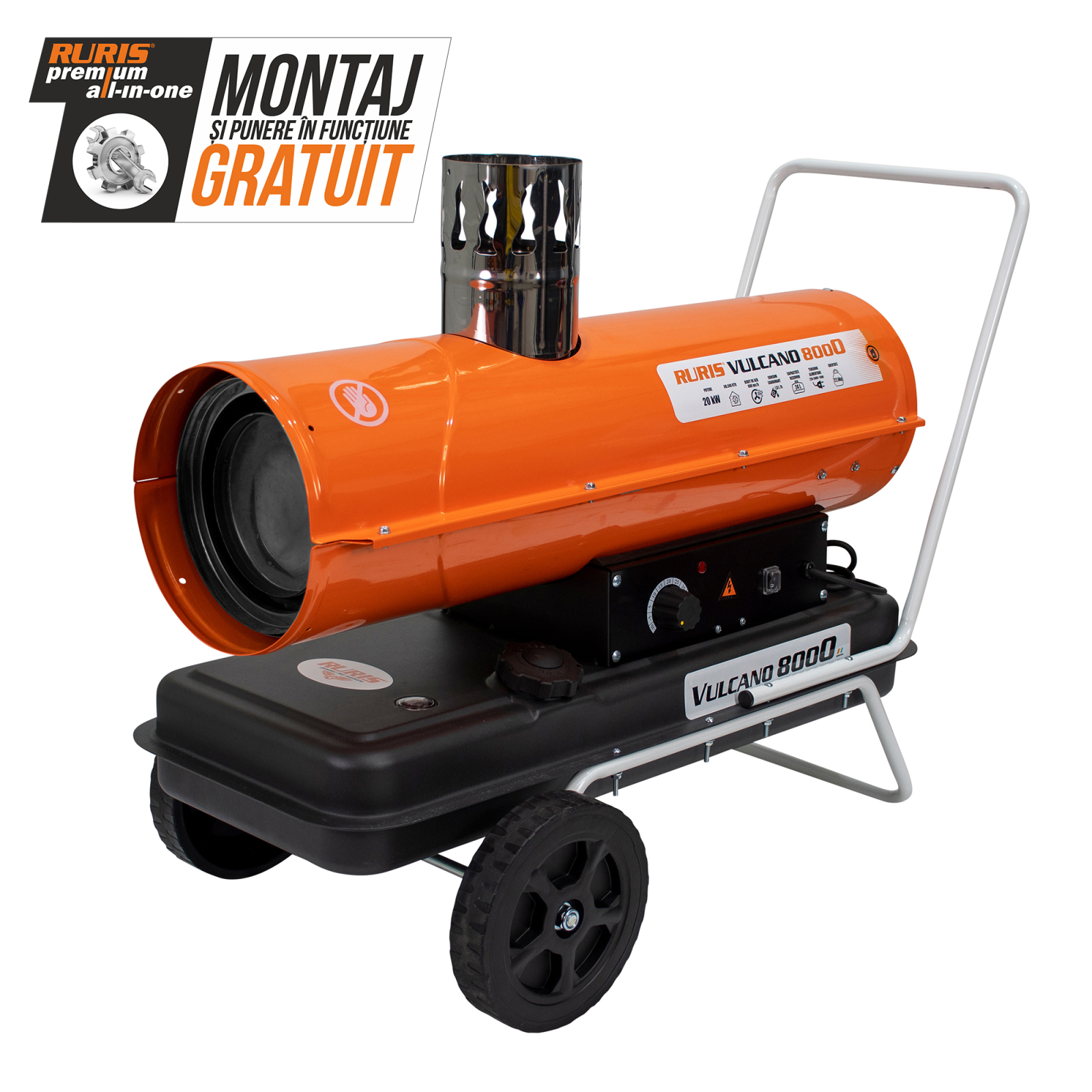 Tunul de căldură RURIS VULCANO 8000 este ușor de transportat și utilizat și este dotat cu un sistem inteligent de termostat pentru menținerea temperaturii stabilite.