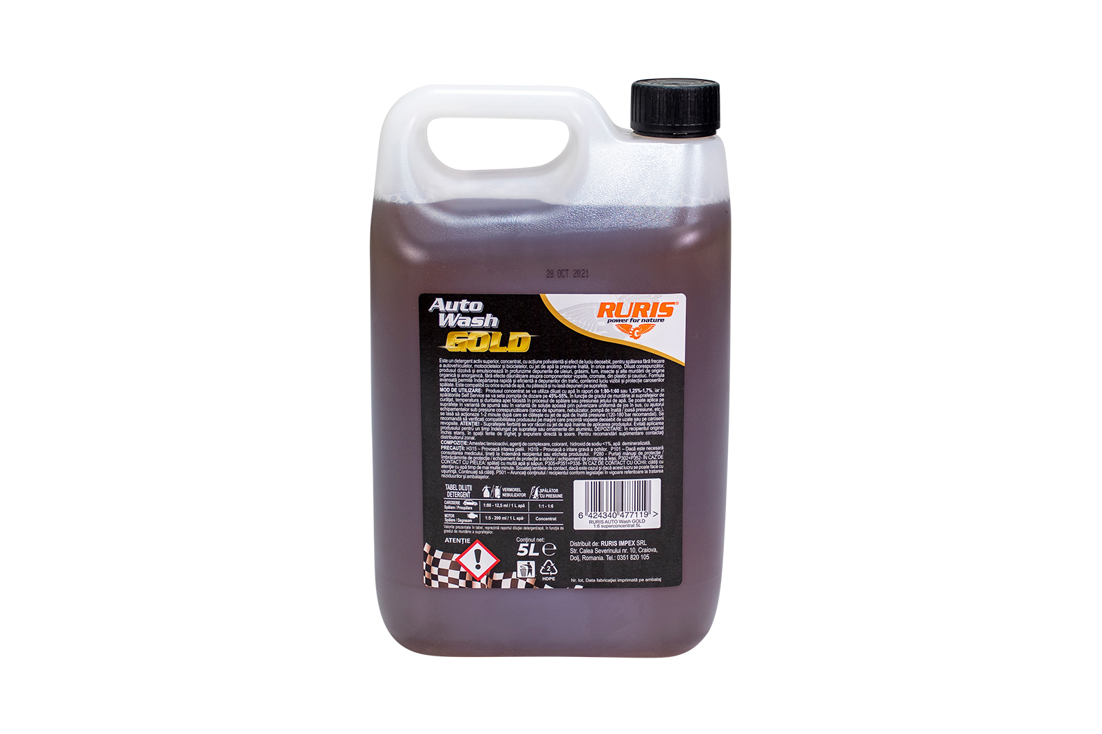 Auto Wash Gold este un detergent activ cu o formulă super concentrată (diluție 1:6), cu putere mare pentru curățarea rapidă și facilă a caroseriei și motorului. Potrivită atât pentru utilizarea alături de aparatele de curățat cu înaltă presiune, cât și pentru spălarea manuală, în spălătoriile profesionale sau chiar în curtea casei tale, această soluție nu necesită utilizarea periei sau a buretelui.