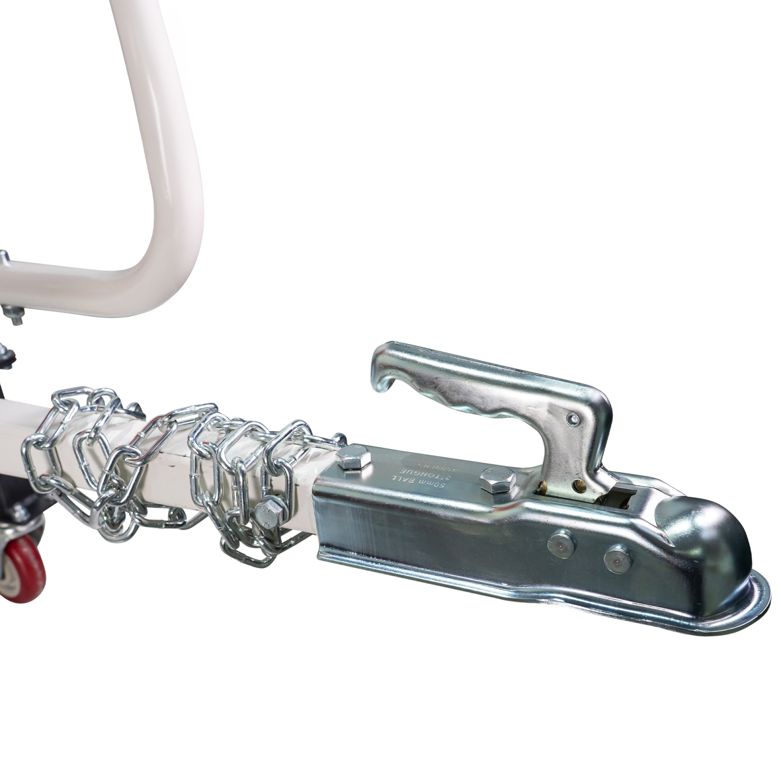 Dimensiunile compacte de 2070 x 675 x 1218 mm și cupla de tractare integrată oferă mobilitate sporită, permițând transportul ușor între zonele de lucru.