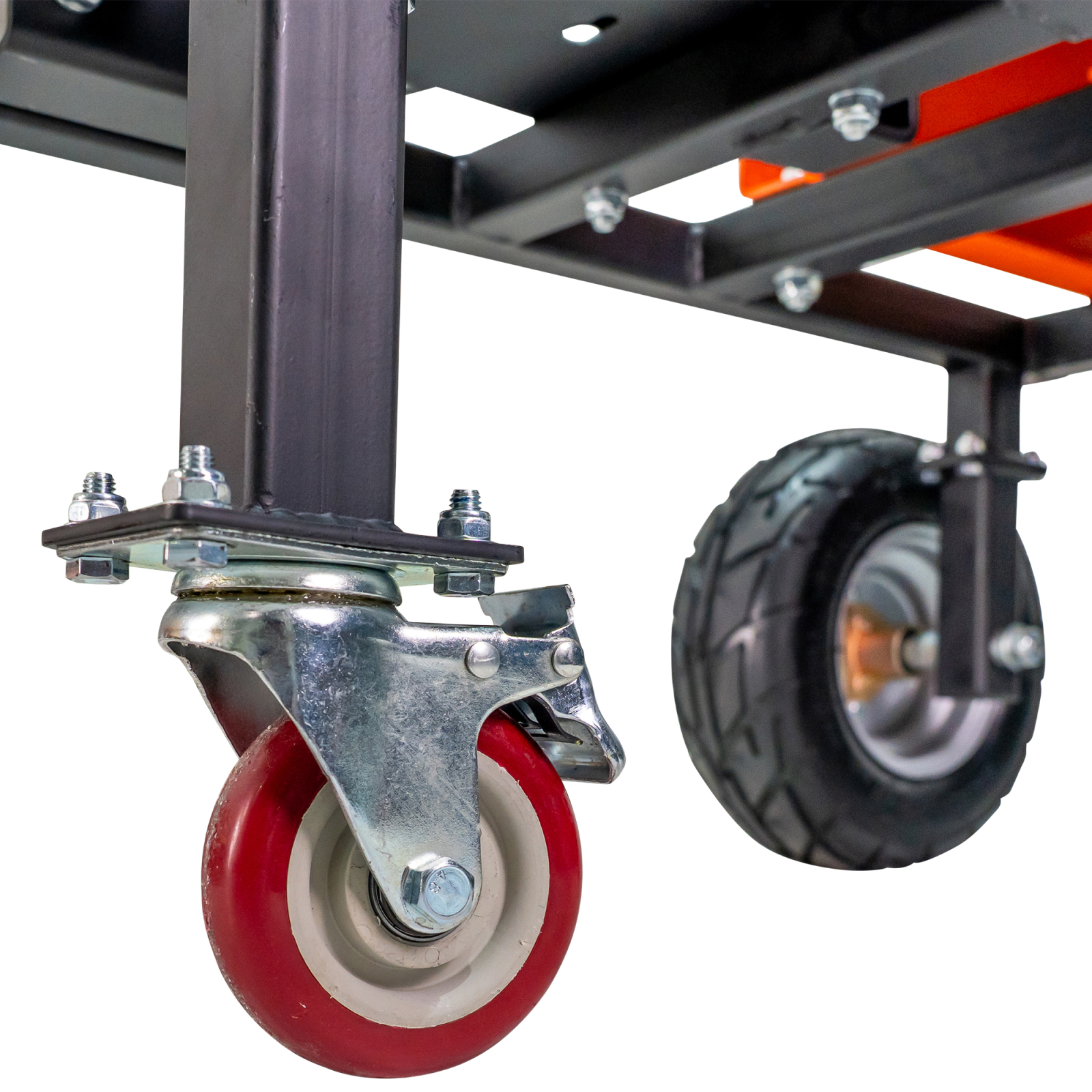 Designul utilajului include 4 roți robuste asigură stabilitate și manevrabilitate excelentă pe diverse tipuri de teren.