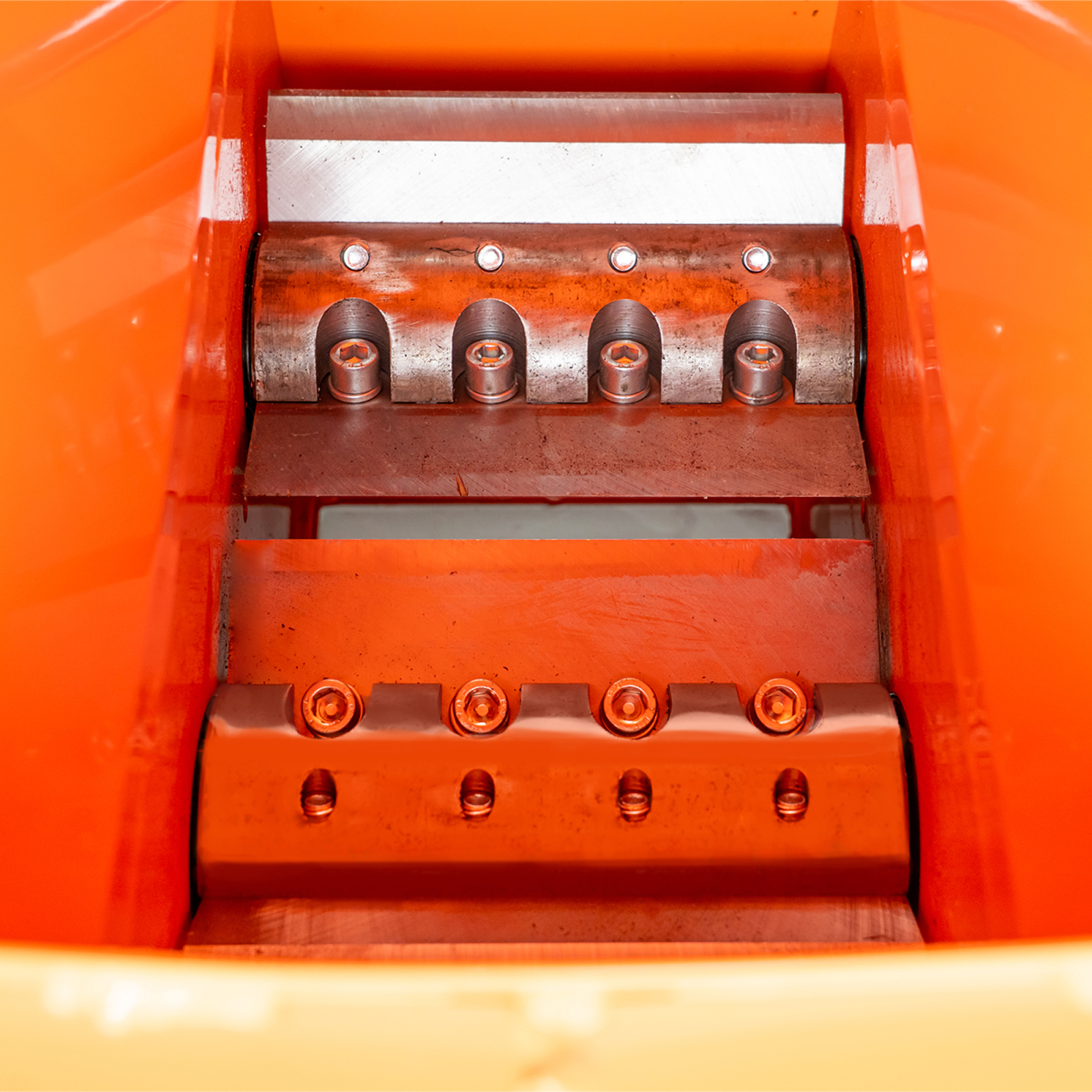 Cele 6 cuțite din oțel carbon, cu dimensiuni de 178 x 60 x 9,5 mm, oferă o tăiere precisă și rezistență ridicată la uzură, ceea ce înseamnă mai puține intervenții pentru ascuțire și o productivitate mai mare.