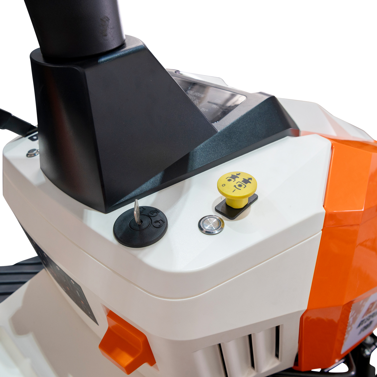 Modelul este echipat cu senzori de prezență pe scaun și la nivelul coșului colector, prevenind pornirea accidentală a utilajului fără utilizator sau fără montarea corespunzătoare a coșului.