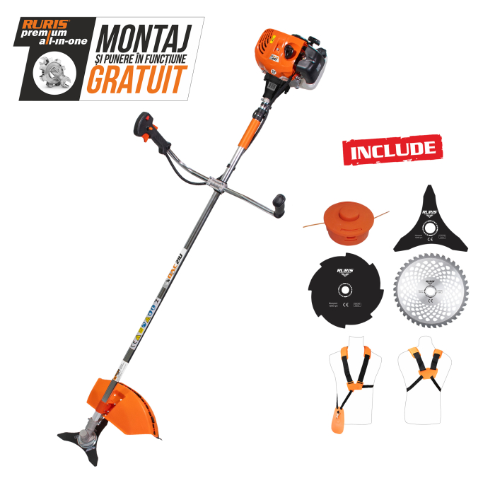 Puterea motorului de 1.7 CP permite folosirea multor accesorii, lărgind astfel domeniul de utilizare. Motocoasa DAC 210 poate fi echipată cu diverse accessorii puse la dispoziție prin intermediul unei game extinse de accesorii RURIS, cum ar fi: autocut enduro cu încărcare rapidă, autocut universal profesional, autocut pentru defrișare, discuri de tuns iarba cu 2, 3, 4, 40 sau 80 tăișuri, harnașament motocoasă DAC, fir trimmer de diferite dimensiuni, tambur.