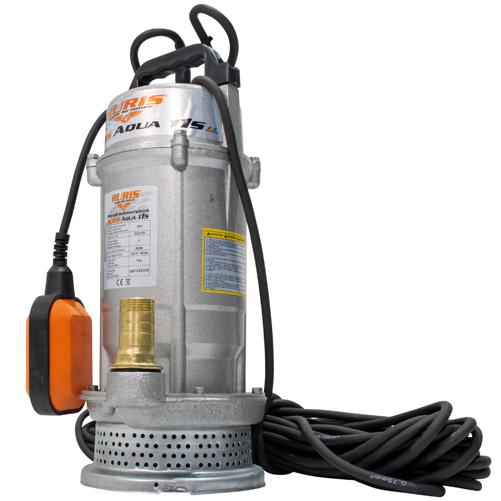Pompa submersibilă RURIS Aqua 11 este dotată cu flotor de siguranță ce asigură pornirea și oprirea automată a pompei la scăderea nivelului apei sub nivelul minim.