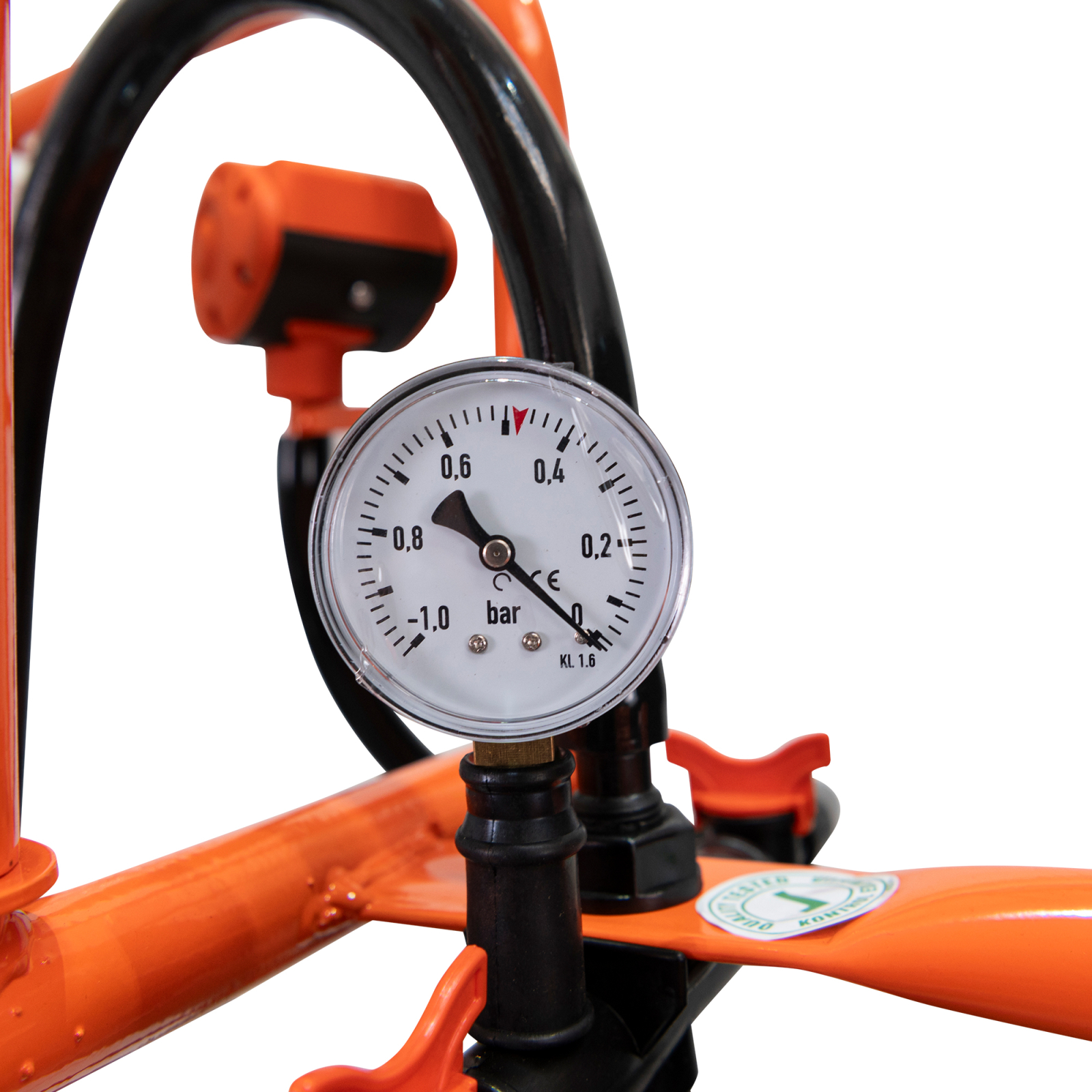 Vacuumul se formeză în tancul de 18 litri, care este protejat antistatic și egalizează presiunea, menține un regim constant de pulsații și mărește perioada cu 1 an a pulsatorului.