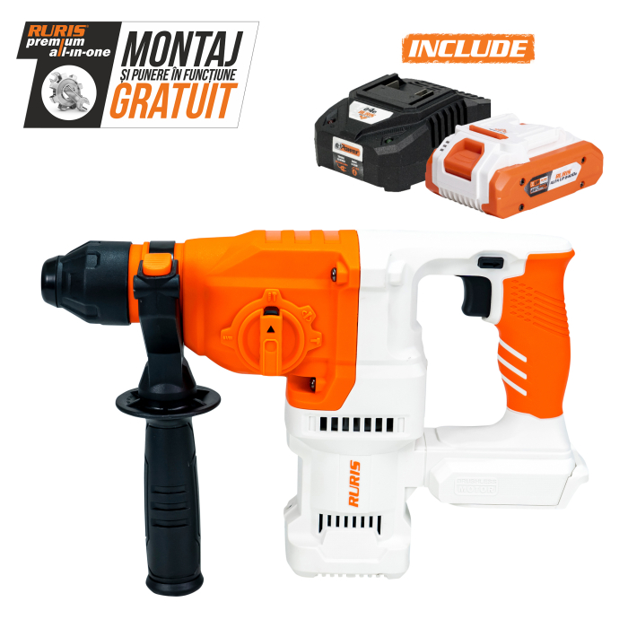 Faptul că ciocanul rotopercutor RURIS RMX2813 este un model care funcționează pe bază de acumulatori oferă utilizatorului un avantaj semnificativ în ceea ce privește mobilitatea și flexibilitatea în utilizare, eliminând nevoia unui cablu de alimentare și permițând lucrul în zone greu accesibile, în care nu există o sursă de curent.