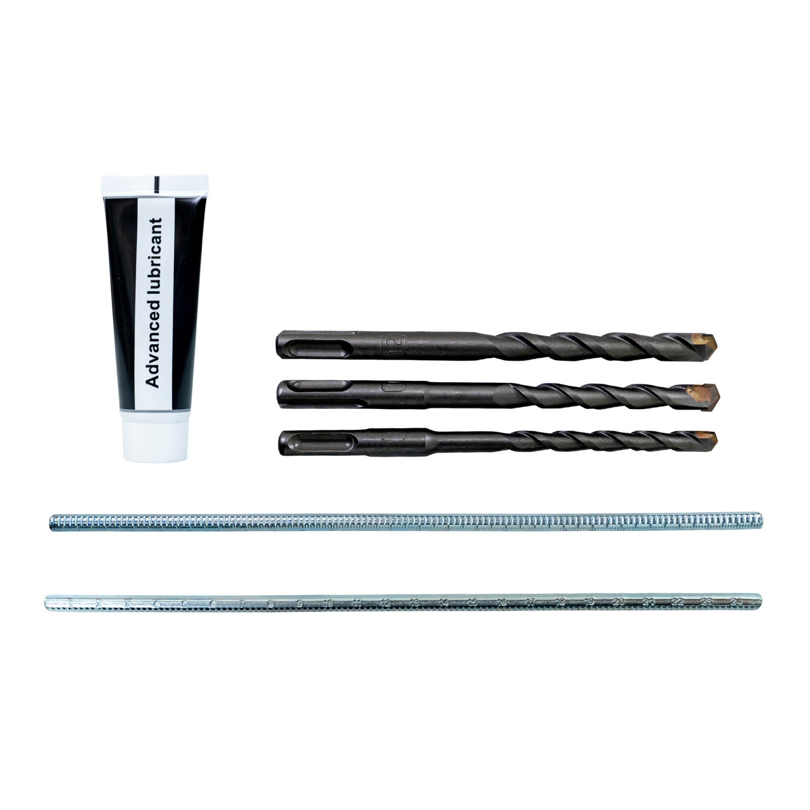Din punct de vedere al accesoriilor, unealta este dotată cu trei burghie de 8, 10 și respectiv 12 mm. Acestea acoperă dimensiuni comune, permițând efectuarea de găuri precise în funcție de necesitățile specifice ale fiecărui proiect, indiferent dacă este vorba de montarea ancorelor, fixarea elementelor structurale sau instalarea diverselor echipamente.