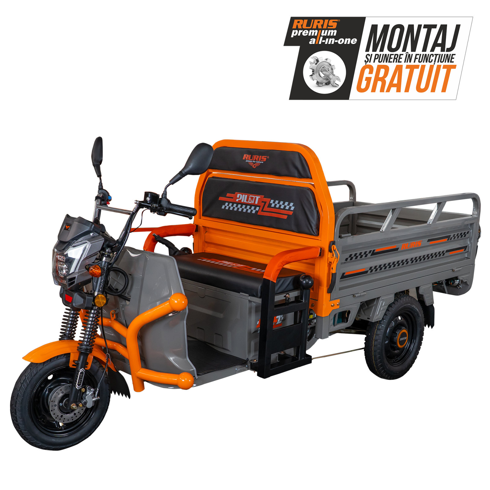Triciclul electric Cargo RURIS Pilot 3120G, disponibil în varianta gri, este partenerul ideal pentru micii fermieri, agricultori, meșteșugari sau pentru cei care caută vehicule utilitare moderne.