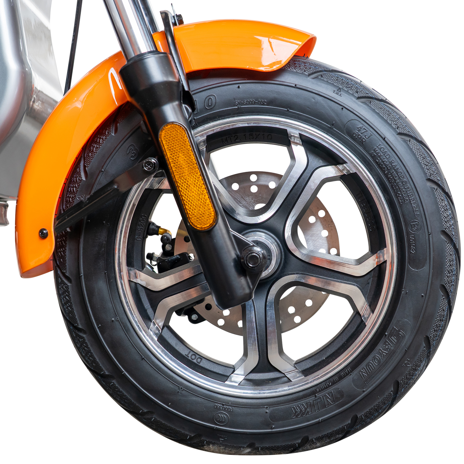 Triciclul electric RURIS Pilot 3040G este dotat cu un sistem de frânare combinat, care include frână disc față și frână tambur în spate — o configurație ce oferă un echilibru excelent între siguranță, eficiență și durabilitate.