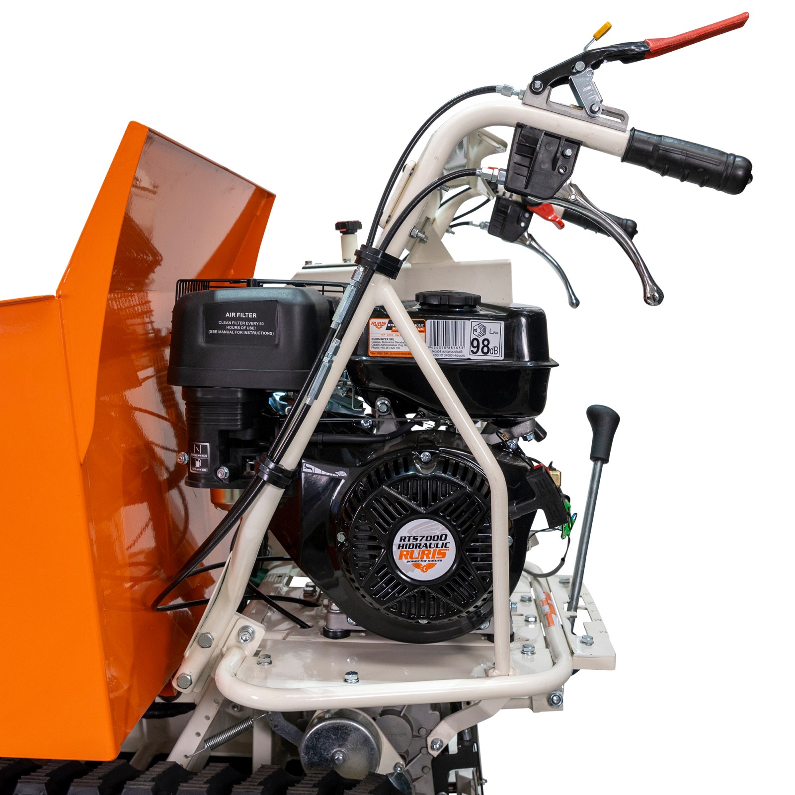 Modelul RURIS RTS 7000 atinge o viteză maximă de deplasare de 5 km/h, ceea ce permite o mișcare rapidă între punctele de lucru atunci când este goală.